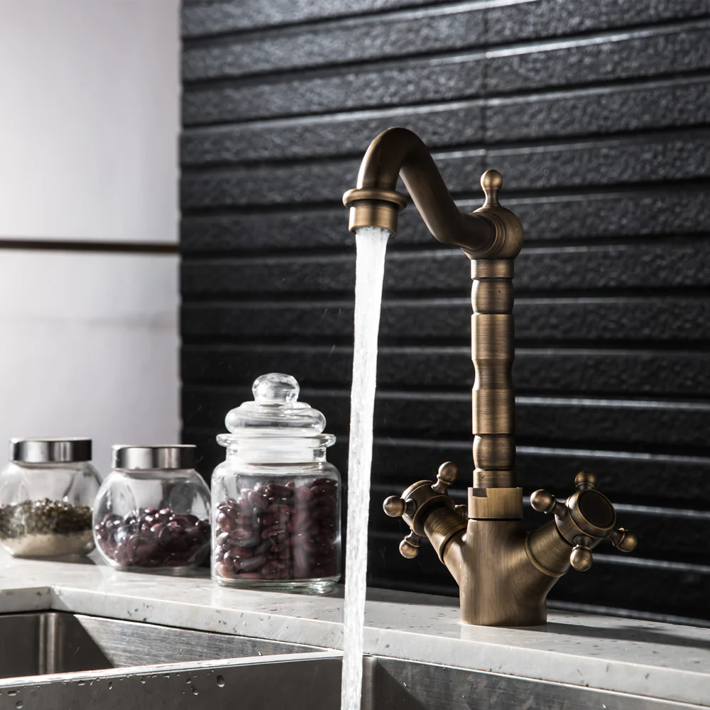 Bathroom Countertop Vessel Sink Faucet | Dual Handles Basin Mixer Taps | Retro Copper Basin Faucet