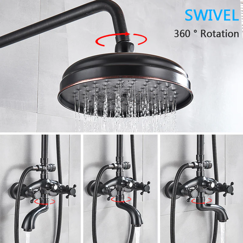 Bathroom Rainfall Shower Mixer Faucet Dual Handle Bath Shower Set Black Brass 8" Showerhead Shower Faucet System