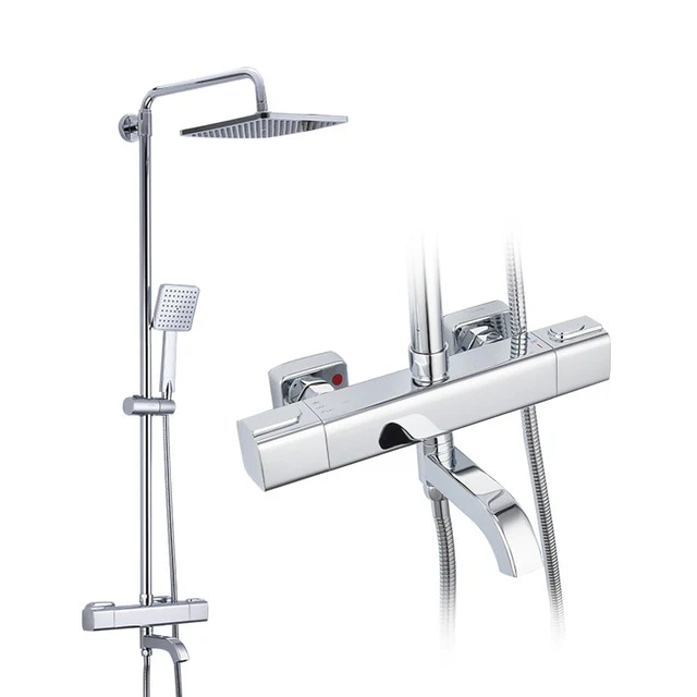 Black Shower Faucets Thermostatic Shower Column Set For Bathroom Mixer Waterfall Faucet Shower Thermostat Tap Rainfall Shower