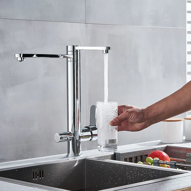Chrome Purify Kitchen Faucet Dual Swivel Spout Three Way Kitchen Sink Mixer Tap Dual Water Outlet Drinking Water Faucet