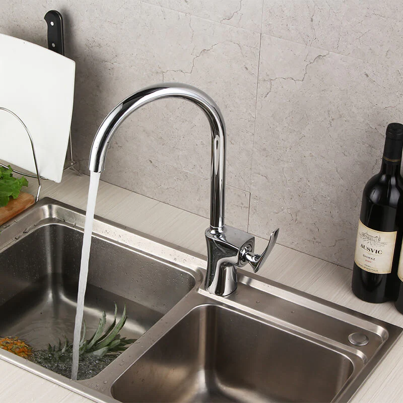 High Arc Solid Brass Kitchen Faucet | Single Hole Kitchen Faucet In Chrome Plating | 360 Degree Swivel Single Lever Kitchen Sink Faucet