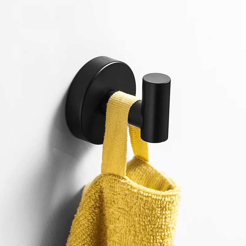 Matte Black Bathroom Hardware Set Robe Hook Single Towel Bar Toilet Paper Holder