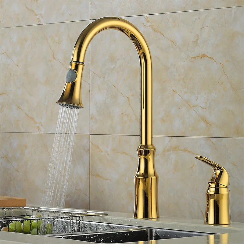 Modern Brass Single Handle Dual Hole Kitchen Faucet | Pull Down Sprayer Spring Kitchen Faucet Dual Function Kitchen Sink Faucet