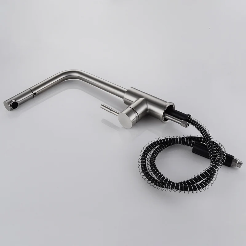 Single Handle Pull-Out Kitchen Faucet | Single Level Stainless Steel Kitchen Sink Faucets with Pull Down Sprayer
