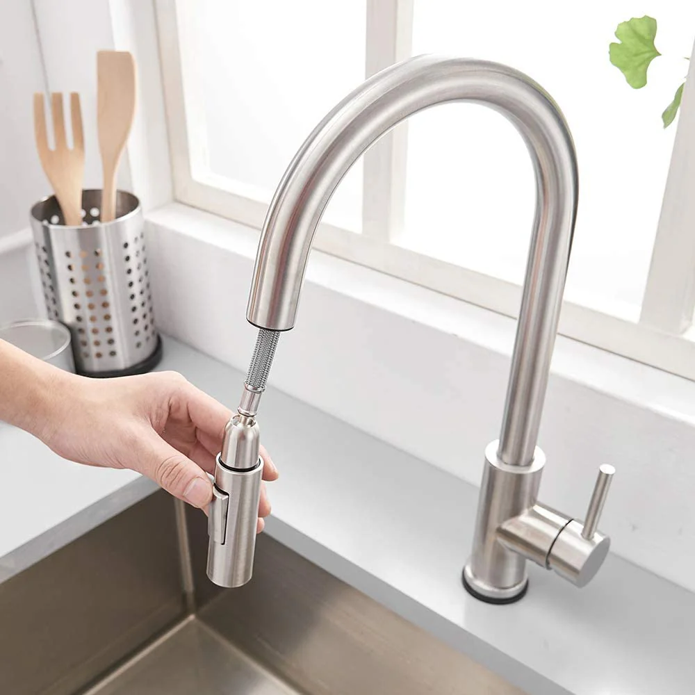 - Pull Out Sprayer: 360-degree swivel sprayer and spout with dual function head, Single Lever Kitchen Sink Faucets. Two spray modes allow you to easily toggle from splash-free aerated stream to powerful pre-rinse spray at the flip of a switch.
